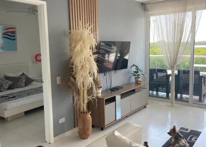 Offering an outdoor pool area, Cartagena Apartamento En Morros En Primera Linea De Playa Apartment is situated within a 10-minute drive of Success Express Las Americas. This 2-bedroom apartment features Wi-Fi, along with parking for guests travelling by car.